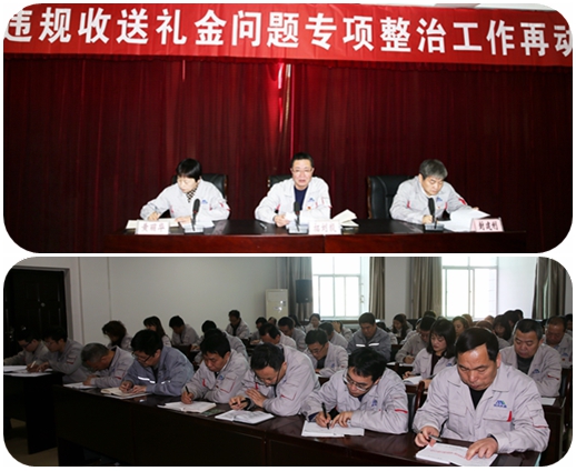 1月21日上午,公司召開集中開展違規(guī)收送禮金問題專項整治工作再動員會議,貫徹落實集團公司關(guān)于違規(guī)收送禮品禮金再動員大會的部署要求。會議由公司黨委副書記、總經(jīng)理封建利主持,公司領(lǐng)導(dǎo)班子成員,基層各單位負責(zé)人、機關(guān)各部室負責(zé)人以及機關(guān)黨員干部50余人參加了會議。 首先,公司財務(wù)總監(jiān)黃麗華傳達了陜有色集團集中開展違規(guī)收送禮金問題專項整治工作再動員會議精神。認真學(xué)習(xí)了集團紀(jì)委書記魏國林傳達的省紀(jì)委監(jiān)委負責(zé)人就全省集中開展違規(guī)收送禮金專項整治有關(guān)問題的解答,就如何幫助黨員干部放下思想包袱,消除思想顧慮?如何解決上繳違規(guī)收受禮金過程中泄漏身份信息?如何將違規(guī)收受的禮金上繳到全省公布的統(tǒng)一專用賬戶等等進行了詳細說明。又傳達學(xué)習(xí)了陜有色集團黨委書記、董事長馬寶平在會上的講話精神。深化教育引導(dǎo),增強敬畏意識。精準(zhǔn)梳理排查,嚴肅執(zhí)紀(jì)審查。堅守責(zé)任擔(dān)當(dāng),務(wù)求整治實效。 接著,公司黨委書記、董事長拓劉毅做了講話。美鑫公司自元月2日起在全公司范圍內(nèi)開展了領(lǐng)導(dǎo)干部違反規(guī)定收送禮金專項整治工作,積極行動起來,宣傳貫徹落實會議精神,取得一定成效。這次開展再動員會,是公司黨委履行黨風(fēng)建設(shè)主體責(zé)任跟大家進行的一次集體談話,要求大家務(wù)必嚴肅對待、認真落實。拓劉毅從三個方面做了明確要求,一是思想認識要到位。“要把剎住“四風(fēng)”作為鞏固黨心民心的重要途徑,對享樂主義、奢靡之風(fēng)等歪風(fēng)陋習(xí)要露頭就打,對“四風(fēng)”隱形變異新動向要時刻防范,要深化標(biāo)本兼治,夯實治本基礎(chǔ),一體推進不敢腐、不能腐、不想腐,做好三個堅決防止的心態(tài)。二是工作措施要到位。落實兩個責(zé)任,加強制度建設(shè)。各單位、各部室要按照專項整治黨員干部《自查自糾情況報告》的主要內(nèi)容,全面自查自糾思想認識上的偏差,副處級以上領(lǐng)導(dǎo)干部還要寫出個人自查自糾情況報告并作出承諾。三是表率作用要到位。領(lǐng)導(dǎo)干部發(fā)揮表率作用是黨的優(yōu)良傳統(tǒng)。一定要提高政治站位,增強“四個意識”、堅定“四個自信”,做到“兩個維護”,強化法紀(jì)敬畏和思想自覺。正確選擇個人愛好,慎重對待朋友交往,明辨是非,重品行,時刻檢點自己生活的方方面面。 最后,公司黨委副書記、總經(jīng)理封建利要求全面貫徹落實本次會議精神,進一步統(tǒng)一思想、凝聚共識,傳導(dǎo)壓力、精準(zhǔn)發(fā)力,把專項整治工作引向深入。 |