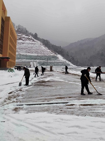 紛紛揚(yáng)揚(yáng)的小雪突如其來,美鑫礦業(yè)公司冶坪煤礦十里礦區(qū),銀裝素裹,分外妖嬈。為保障人員出行安全,公司組織人員鏟除路面積雪。