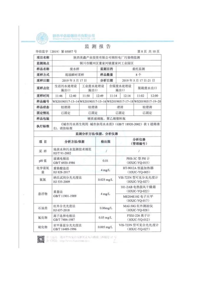 陜西美鑫產(chǎn)業(yè)投資有限公司錦陽(yáng)電廠2019年二季度 2×350MW機(jī)組環(huán)保設(shè)施自行監(jiān)測(cè)公示
