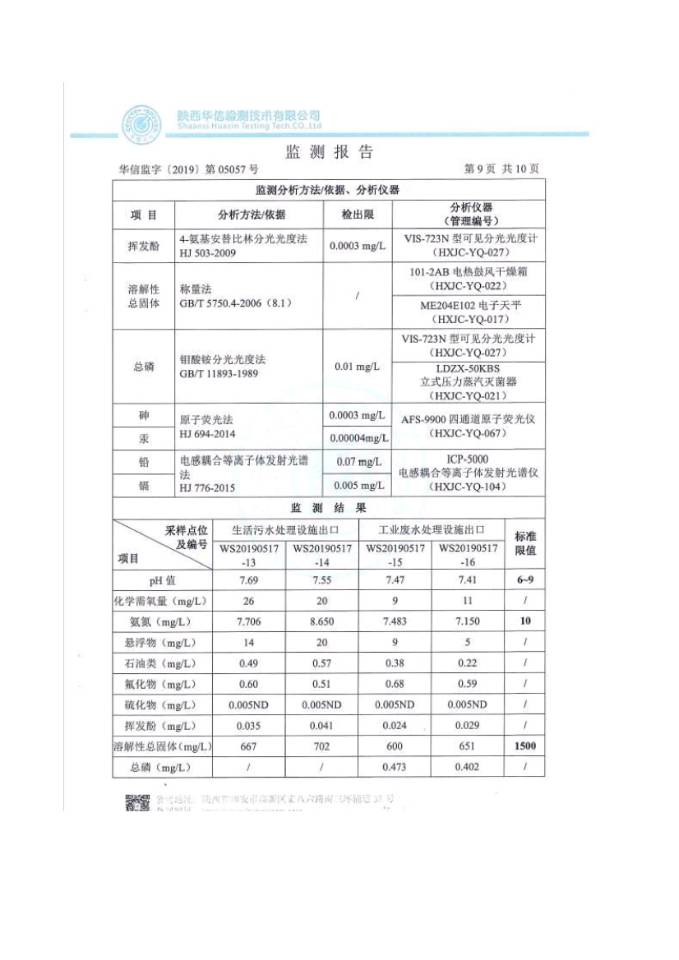 1)監(jiān)測(cè)指標(biāo):pH值、化學(xué)需氧量、氨氮、懸浮物、總磷、石油類、氟化物、硫化物、揮發(fā)酚、溶解性總固體(全鹽量)