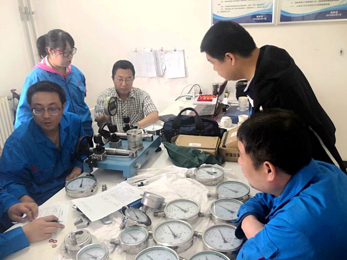 熱工表計是運行人員的耳目。壓力是熱力過程中的一個重要參數(shù),準確地測量壓力進而控制壓力,對保證熱力設(shè)備安全和經(jīng)濟運行至關(guān)重要。如果壓力、溫度等超過材料能夠承受的限度,將引發(fā)安全事故。因此,要確保安全生產(chǎn),保證設(shè)備運行正常就要做好熱工儀表的定期校驗。 近日,銅川市計量局工作人員對錦陽電廠熱工班員工進行了壓力表校驗培訓。壓力表要校驗,首先要確定它本身是好的。單從外觀判斷,如果它的指針指到零位,才有校驗的必要。根據(jù)培訓老師的指導,李薇靜拿起第一塊壓力表,小心翼翼地裝到壓力臺上,開始加壓,加壓手輪旋轉(zhuǎn)幾圈,壓力表指針只有微小的走動,怎么回事?李薇靜仔細檢查也沒發(fā)現(xiàn)不正確的地方。老師笑呵呵地指著壓力表與連接螺紋處,