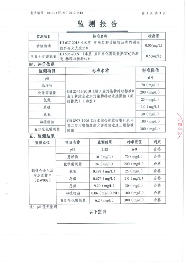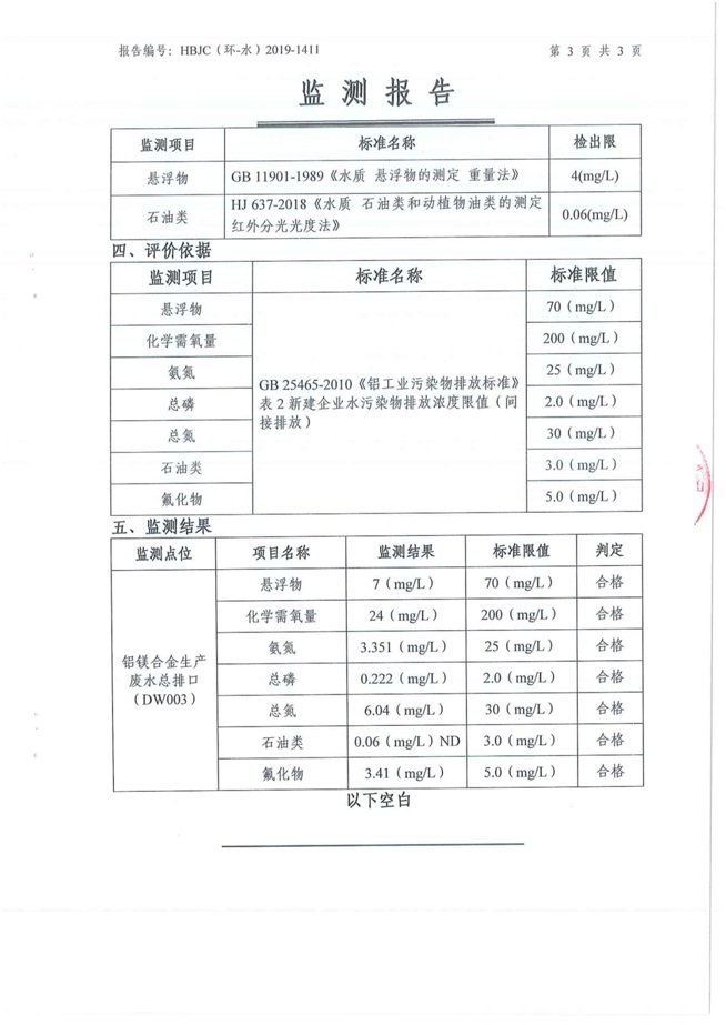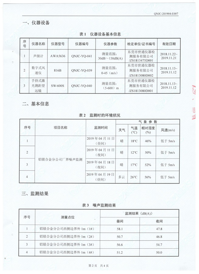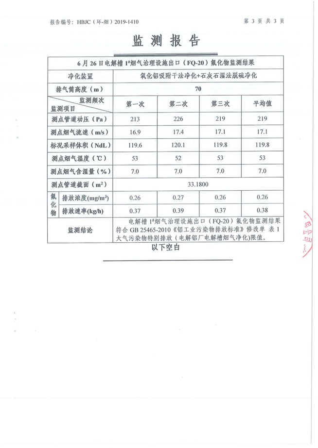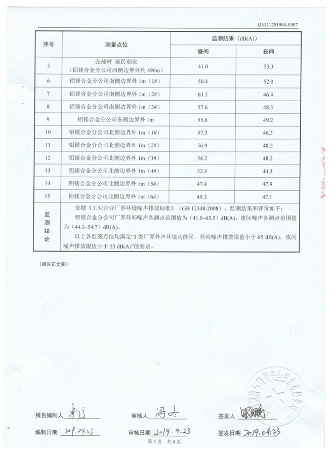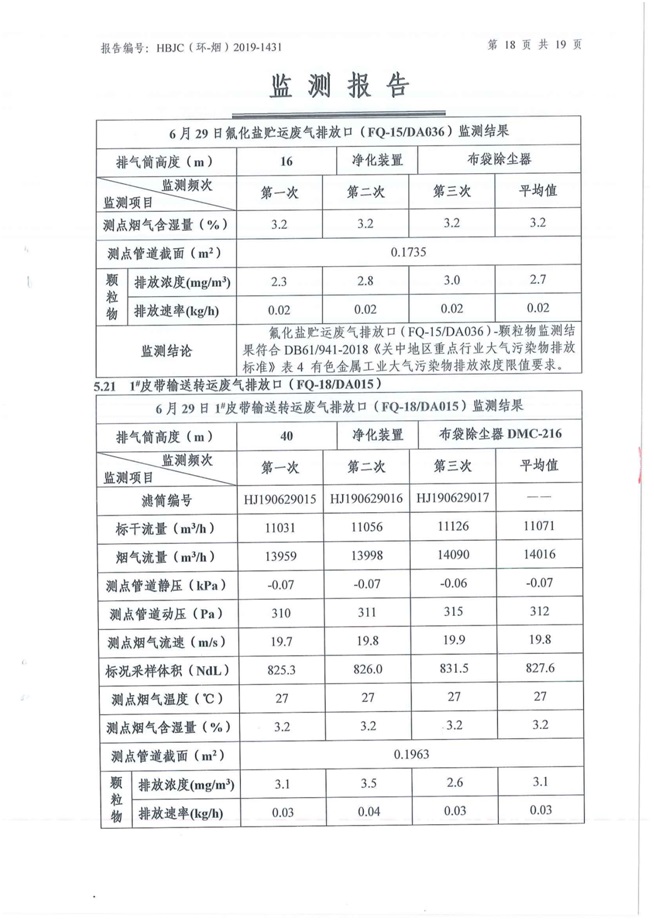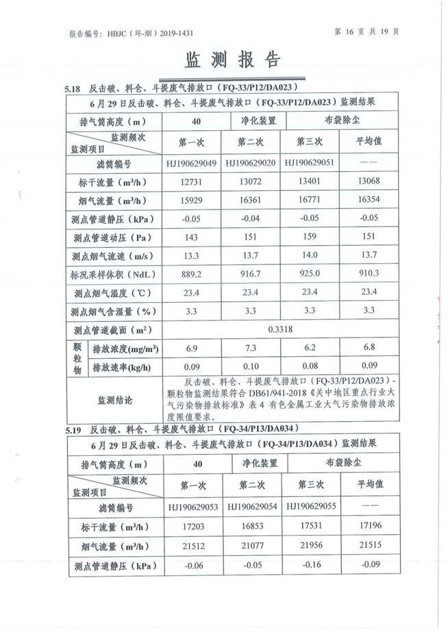 一、基礎(chǔ)信息: 陜西美鑫產(chǎn)業(yè)投資有限公司 統(tǒng)一社會(huì)信用代碼:91610200567136996Y 法定代表人:高曉兵 生產(chǎn)地址:陜西省銅川市董家河工業(yè)園區(qū) 聯(lián)系方式:09196982605 生產(chǎn)經(jīng)營和管理服務(wù)的主要內(nèi)容、產(chǎn)品及規(guī)模: 美鑫公司在陜西有色、陜西煤化兩大集團(tuán)的正確領(lǐng)導(dǎo)下,在銅川市委、市政府的關(guān)心支持下,充分利用銅川資源型城市轉(zhuǎn)型政策,依托園區(qū)區(qū)位優(yōu)勢,擬投資150億元,建設(shè)年產(chǎn)30萬噸預(yù)焙陽極、120萬噸煤礦、30萬噸鋁鎂合金及配套動(dòng)力站、20萬噸鋁深加工、年吞吐量500—800萬噸物流園等循環(huán)經(jīng)濟(jì)項(xiàng)目。該集群項(xiàng)目已被列入《陜西省國民經(jīng)濟(jì)和社會(huì)發(fā)展第十二個(gè)五年規(guī)劃綱要》,為陜西省“58123”項(xiàng)目之一。美鑫公司以循環(huán)經(jīng)濟(jì)為路徑,堅(jiān)持經(jīng)濟(jì)增長與環(huán)境保護(hù)協(xié)調(diào)發(fā)展,聚合資源與資本,走綠色發(fā)展、清潔發(fā)展、低碳發(fā)展的循環(huán)經(jīng)濟(jì)轉(zhuǎn)型升級之路。 陜西美鑫鋁鎂合金分公司采用的500kA預(yù)焙陽極電解槽,自動(dòng)化程度高,電解槽打殼、加料全過程均由微機(jī)自動(dòng)控制,從而使槽罩開啟次數(shù)顯著降低,電解槽集氣效率能夠達(dá)到99%,大大地減少了煙氣無組織排放。項(xiàng)目配置了2套電解煙氣凈化系統(tǒng),經(jīng)捕集的煙氣通過排煙支管進(jìn)入排煙總管,采用電解鋁生產(chǎn)原料—氧化鋁吸附阻濾煙氣中的氟化氫氣體及含氟煙塵,吸附后的載負(fù)氧化鋁進(jìn)入袋式除塵器,經(jīng)氣固分離后進(jìn)入石灰石—石膏脫硫系統(tǒng)脫硫。 陜西美鑫產(chǎn)業(yè)投資有限公司鋁鎂合金分公司2019年2季度自行監(jiān)測如下: 二、監(jiān)測方案: 1 大氣污染源監(jiān)測
