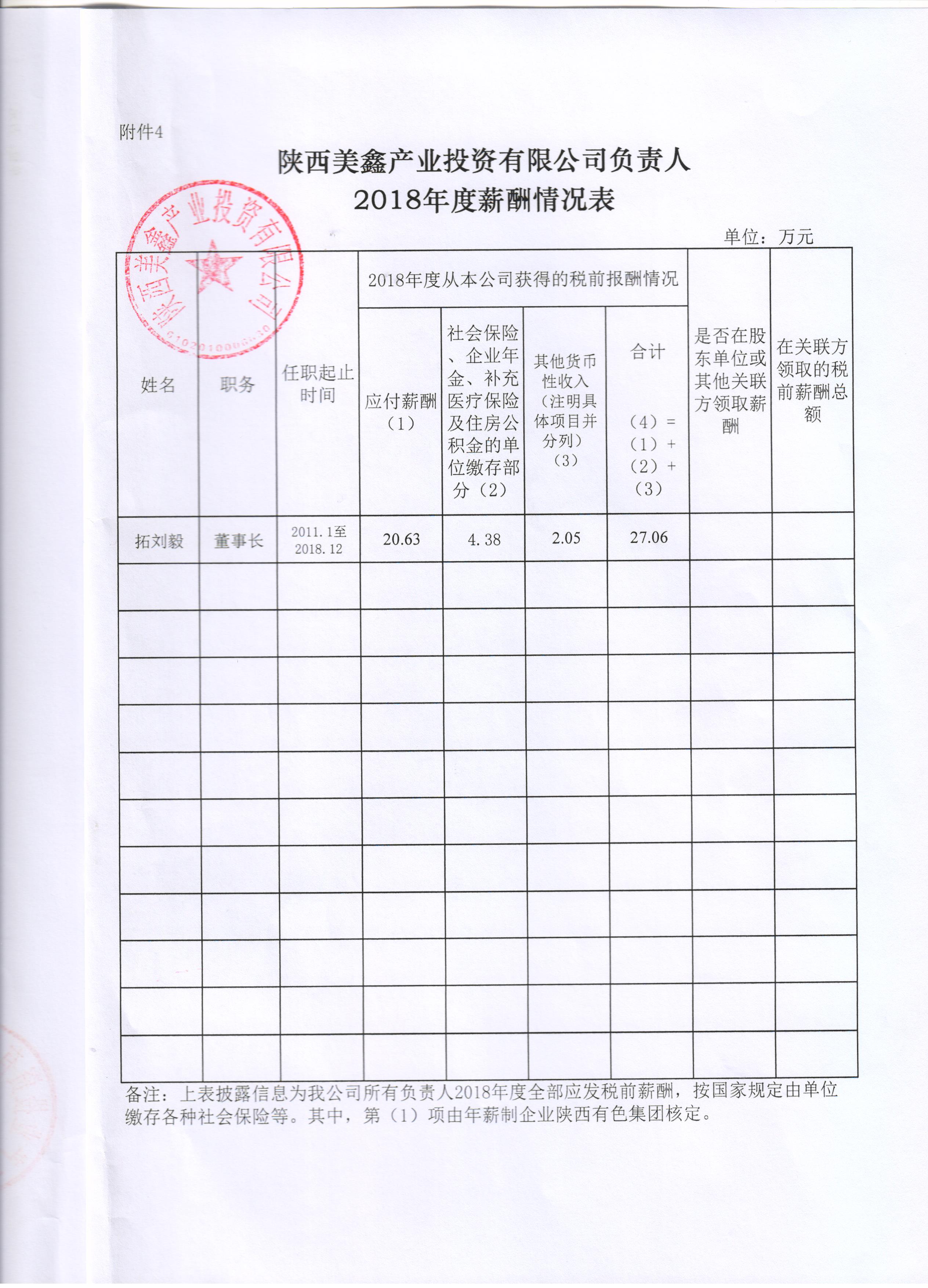 陜西美鑫產(chǎn)業(yè)投資有限公司負責人2018年度薪酬情況表
