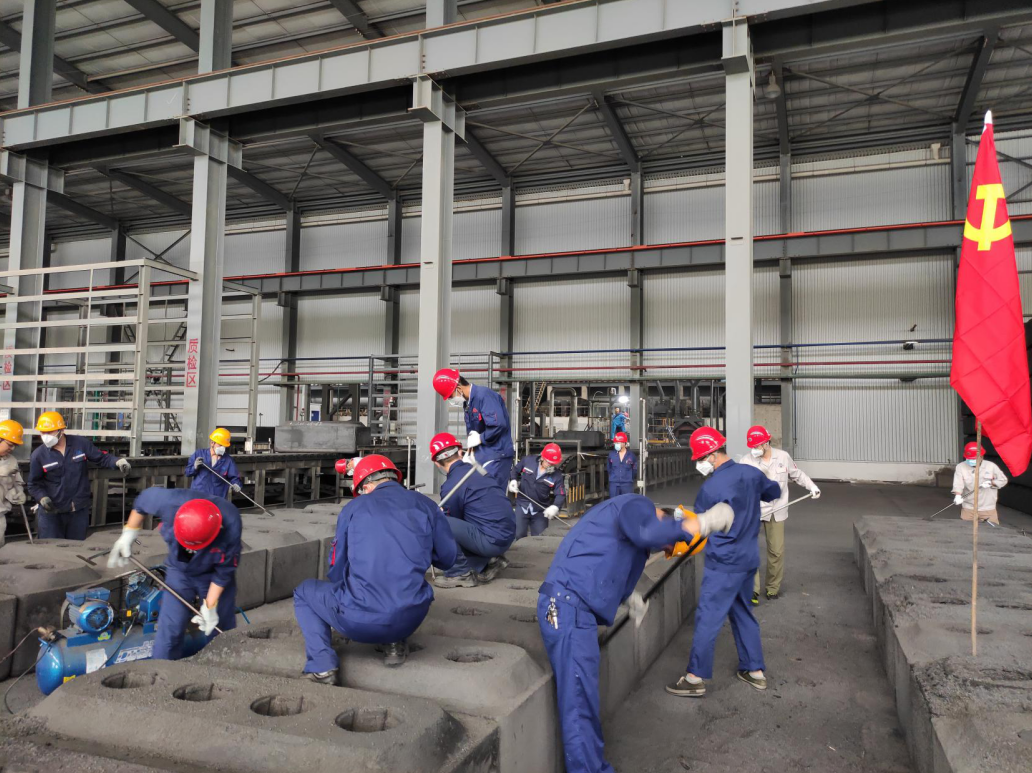 為充分發(fā)揮黨員先鋒模范作用,弘揚(yáng)奉獻(xiàn)精神,近日,陽極分公司為解決焙燒陽極熟塊填充料粘結(jié)嚴(yán)重、外觀清理速度慢、影響生產(chǎn)進(jìn)度的問題,陽極分公司黨總支結(jié)合生產(chǎn)實(shí)際,組織開展了陽極熟塊清焦義務(wù)勞動(dòng)主題黨日活動(dòng);顒(dòng)自從7月21日至24日歷時(shí)四天,共計(jì)102名黨員干部、管理人員參與了此次活動(dòng)。 活動(dòng)中,各支部黨員職工積極踴躍、爭先恐后,按照分工任務(wù)計(jì)劃和清焦要求,大家分工協(xié)作、相互配合,對陽極熟塊表面粘接的焦粒及炭碗進(jìn)行了清理,勞動(dòng)現(xiàn)場熱火朝天,一片繁忙。經(jīng)過四天的奮戰(zhàn),共清理陽極熟塊208塊,極大的緩解了焙燒塊清焦難題,有效保障焙燒車間生產(chǎn)速度和任務(wù)量。 通過此次活動(dòng)的開展,充分發(fā)揮了廣大黨員勇于擔(dān)當(dāng)、甘于奉獻(xiàn)的精神,進(jìn)一步增強(qiáng)了黨組織的凝聚力和戰(zhàn)斗力,展示了陽極分公司黨員職工團(tuán)結(jié)一致的良好風(fēng)貌。 |