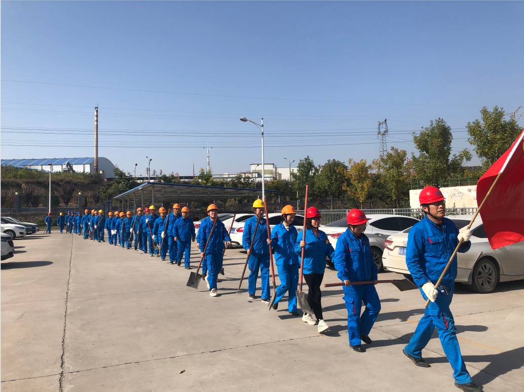 今年以來,由于雨水天氣較多,位于廠區(qū)內(nèi)工業(yè)消防廢水池頂部雜草眾生,不僅影響廠區(qū)美化環(huán)境,還會引發(fā)火災(zāi)等安全隱患。為有效發(fā)揮黨員的先鋒模范作用,10月23日下午,錦陽電廠黨總支開展“清雜草、助文明”主題黨日活動,組織電廠黨員干部、積極分子及團員共計37人,對工業(yè)消防水池頂部雜草進行清理。 活動開始前,電廠黨總支副書記劉銀玲就此次主題黨日活動開展提出要求。她指出,此次主題黨日活動是不僅僅是錦陽電廠精神文明單位創(chuàng)建工作的需要,也是美化廠區(qū)環(huán)境、提升形象,消除安全隱患,豐富主題黨日活動的內(nèi)容與載體。希望各黨員用自己的實際行動發(fā)揮好共產(chǎn)黨員的先鋒模范作用和黨組織的戰(zhàn)斗堡壘作用,為電廠各項事業(yè)順利推進貢獻自己的力量。 隨后,大家排成縱隊,整齊劃一,拿著工具,前往勞動地點。 大家以小組為單位分片包干,有的揮鐵鍬,有的掄鐮刀,有的拔草,有的對雜草進行裝袋整理......有條不紊、干勁十足、團結(jié)協(xié)作,每個人的臉上都露出了滿足的笑容。 經(jīng)過近一個小時的辛勤勞動,工業(yè)消防水池頂部雜草被清除干凈,廠區(qū)面貌煥然一新。 |