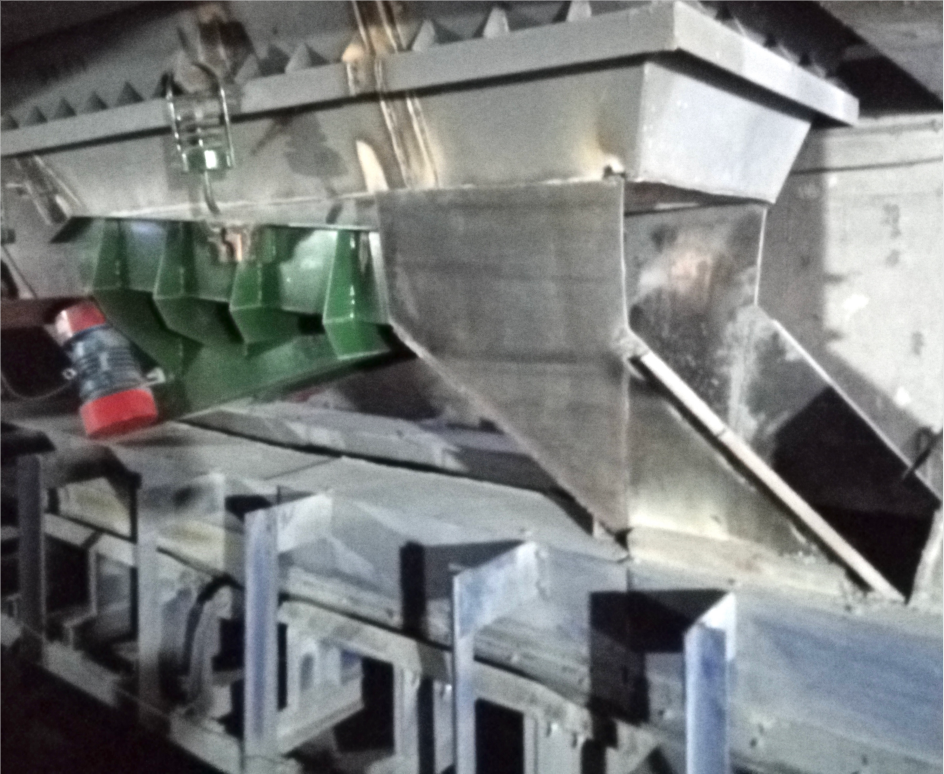 為解決這一難題,組裝車間多次溝通設(shè)備廠家,查閱相關(guān)資料,學(xué)習(xí)同行業(yè)先進(jìn)生產(chǎn)經(jīng)驗(yàn),經(jīng)分公司領(lǐng)導(dǎo)、相關(guān)部門、車間技術(shù)骨干專題研究,結(jié)合現(xiàn)場實(shí)際,制定出行之有效的改造方案:通過增大原外加料口尺寸,將殘陽極表面預(yù)破碎的大塊電解質(zhì)直接通過外加料口加入破碎系統(tǒng),省去了裝卸和自動(dòng)清理工序,大大減輕了設(shè)備運(yùn)行負(fù)擔(dān),同時(shí),在外加料口下方加裝振動(dòng)給料機(jī),加大進(jìn)給量,對(duì)破碎后的電解質(zhì)及時(shí)處理,避免堵料。