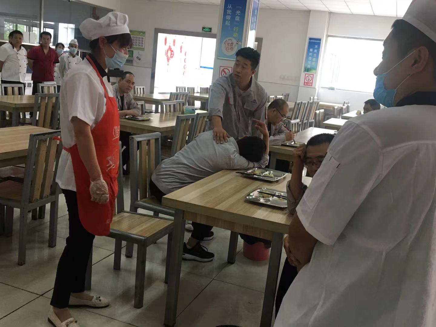 近日,為加強餐廳食品衛(wèi)生工作,保障廣大職工的身心健康和生命安全,提高后勤中心應(yīng)對食物中毒或食源性疾患突發(fā)事故的處置能力。生活后勤服務(wù)中心在陽極餐廳開展餐職工食物中毒應(yīng)急處置演練。 在就餐過程中,就餐人員出現(xiàn)的惡心、嘔吐、腹痛等不適癥狀,疑似食物中毒。餐廳服務(wù)人員看到情況后,立即報告餐廳班長,班長一邊組織應(yīng)急人員開展應(yīng)急處置,一邊上報運行部相關(guān)領(lǐng)導。救護組人員對疑似中毒人員進行檢查,開展必要的救治。應(yīng)急人員立即停止手頭上工作,組織現(xiàn)場就餐人員停止就餐并對已就餐人員進行登記,及時封存所有就餐人員食物、當天所有食材、原料庫。領(lǐng)導到達現(xiàn)場后及時了解現(xiàn)場情況,上報公司應(yīng)急值班室。隨著應(yīng)急人員將疑似中毒人員送往就近醫(yī)院進行救治,演練在全體人員的配合下圓滿結(jié)束。 通過演練,使相關(guān)崗位人員熟悉了食品安全事故應(yīng)急處置流程,確保了今后在類似事故突發(fā)時,應(yīng)急工作能快速、高效、有序地進行,從而最大限度地保護職工的生命安全。 |