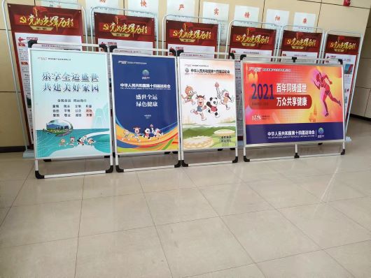 線下宣傳,宣傳效果好。在公司機(jī)關(guān)及各單位LED顯示屏滾動播放“十四運(yùn)”標(biāo)語口號,在醒目位置設(shè)置了多塊“十四運(yùn)”宣傳展板,各單位車間通過張貼海報、懸掛宣傳橫幅,切實達(dá)到了良好的宣傳效果。