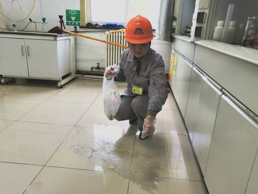 為進一步加強質檢計量中心實驗室人員安全宣傳教育,強化相關人員的實驗室安全防護意識,增強廣大職工應對實驗室危險化學品泄露事故的應急處置能力,近日,質檢計量中心檢驗三室組織開展模擬分析人員在日常工作中不慎將濃鹽酸打翻灑落、導致人員被灼的緊急救援及現場處置演練活動。中心黨支部書記、主任王平現場觀摩。