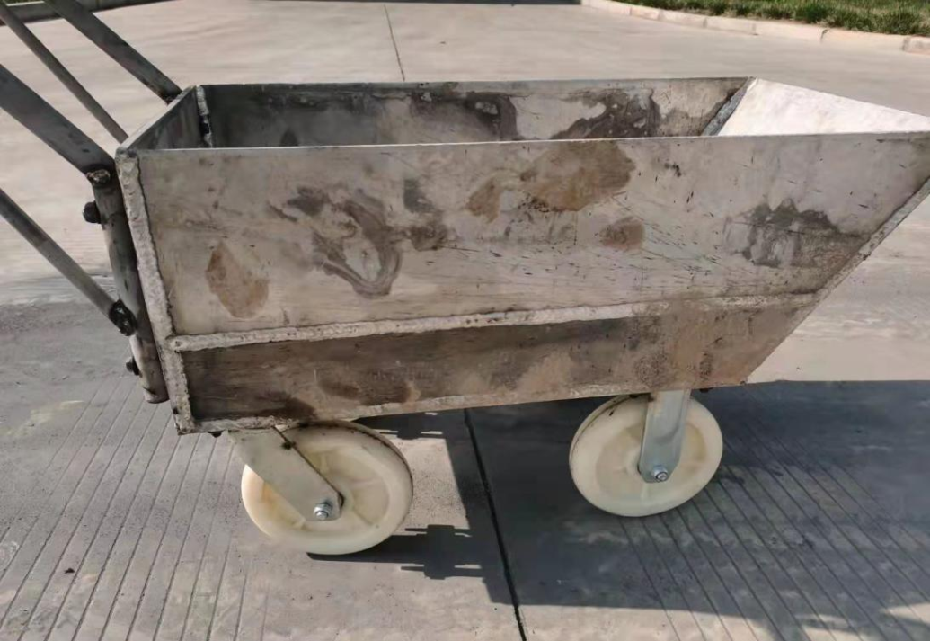 為解決此問題,電解二車間技術創(chuàng)新小組于今年4月份加工改造電解槽穿槽小車。車斗為10mm厚鋁板制作,上部為80cm,下部為60cm,42cm,30cm,小車主把、輔筋都采用不銹鋼管制作,不僅輕巧耐用,而且能有效防止電解槽磁場影響。合理的尺寸設計充分利用了兩槽中間位置的有效空間,有效避過槽體AB面中間穿槽母線阻擋,使小車能夠在風格網(wǎng)來回穿梭,運送物料極為方便,一人便可輕松操作。