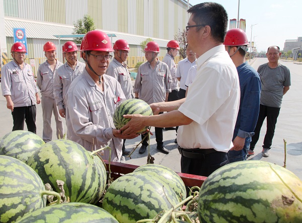 | 炎炎夏日,酷暑難耐。近日來,持續(xù)的高溫天氣考驗著堅守在生產(chǎn)一線的職工,7月1日上午,公司黨委副書記李書平,公司工會主席包廣平、副主席池遠宏及公司女工委主任馬海聆一行前往基層一線開展“送清涼”活動,將公司的關(guān)懷及時送到職工的身邊。 |