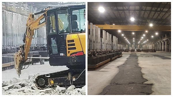 陽(yáng)極分公司組裝車間裝卸站附近地面由于15T叉車、拖車頻繁行駛碾壓,造成大小坑洼十余處,盡管車間鋪設(shè)了厚鋼板對(duì)地面進(jìn)行臨時(shí)應(yīng)急處理,但始終治標(biāo)不治本,存在一定車輛行駛安全隱患。 為了徹底改善地面環(huán)境,消除此項(xiàng)隱患,車間決定集中對(duì)裝卸站周邊等廠房殘缺下陷地面進(jìn)行修復(fù)。為了盡量減少對(duì)正常作業(yè)的影響,車間對(duì)生產(chǎn)現(xiàn)場(chǎng)進(jìn)行細(xì)致考量核實(shí),最終決定在最大程度利用現(xiàn)有區(qū)域空間的同時(shí),將裝卸站上站工位采取15T叉車人工上線,由人工清理上線后托盤中剩余大塊電解質(zhì),隨后將清理后的陽(yáng)極托盤用于裝成品陽(yáng)極,并采取3T叉車下線,5T叉車和天車裝盤,最后將裝好的成品陽(yáng)極送往鋁鎂合金分公司電解車間使用。在地面修復(fù)過(guò)程中,現(xiàn)場(chǎng)作業(yè)環(huán)境復(fù)雜,存在叉車、拖車、天車等交叉作業(yè)情況,車間由專人負(fù)責(zé)現(xiàn)場(chǎng)安全監(jiān)管,拉起警戒線,劃定風(fēng)險(xiǎn)、安全區(qū)域,確,F(xiàn)場(chǎng)運(yùn)行安全可控,在車間和施工人員的協(xié)調(diào)配合下,僅用11天就完成了地面修復(fù)工作,經(jīng)養(yǎng)護(hù)后隨即投入使用,車間生產(chǎn)線恢復(fù)正常運(yùn)行。 車間廠房地面修復(fù)工作的順利完成,在美化和改善了車間整體環(huán)境的同時(shí),穩(wěn)定和保證了車間正常生產(chǎn)秩序,為鋁鎂合金分公司充足供應(yīng)成品陽(yáng)極和電解質(zhì)破碎料打下了堅(jiān)實(shí)基礎(chǔ)。 |