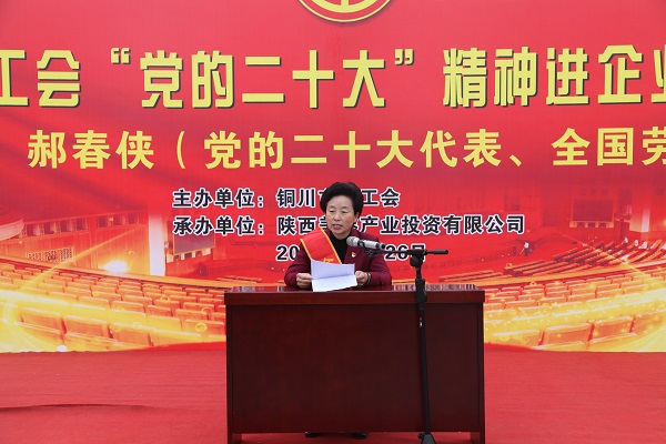 | 10月26日,公司邀請黨的二十大代表、全國勞模、銅川市耀州區(qū)石柱鎮(zhèn)西古莊村黨支部書記、村委會(huì)主任郝春俠進(jìn)企業(yè)宣講黨的二十大精神。 銅川市總工會(huì)相關(guān)負(fù)責(zé)人及公司領(lǐng)導(dǎo)出席會(huì)議,銅川市總工會(huì)機(jī)關(guān)、銘帝鋁業(yè)有限公司、陜西達(dá)美輪轂有限公司及公司黨員干部職工代表近600人參加此次會(huì)議。會(huì)議由公司黨委副書記李書平主持。 公司黨委書記、董事長高曉兵致辭,對銅川市總工會(huì)黨組書記、常務(wù)副主席何建平和郝春俠代表的到來表示熱烈的歡迎和衷心的感謝。他表示,黨的十八大以來,陜西美鑫公司始終堅(jiān)持以高質(zhì)量發(fā)展為主題,充分發(fā)揮國有企業(yè)在構(gòu)建“大循環(huán)、雙循環(huán)”發(fā)展新格局中應(yīng)有作用,積極踐行社會(huì)責(zé)任和企業(yè)擔(dān)當(dāng),為地方經(jīng)濟(jì)作出了積極貢獻(xiàn)。公司將倍加珍惜此次報(bào)告會(huì)帶來的高層次、高水平的實(shí)踐輔導(dǎo),以黨的二十大精神為指引,堅(jiān)決貫徹黨中央決策部署,擼起袖子加油干、風(fēng)雨無阻向前行,進(jìn)一步把循環(huán)經(jīng)濟(jì)產(chǎn)業(yè)鏈的藍(lán)圖繪就的更大更美好,以高質(zhì)量發(fā)展的實(shí)效來檢驗(yàn)學(xué)習(xí)成果。 “習(xí)近平總書記的講話,鏗鏘有力、振奮人心,如潮的掌聲一次又一次響起,讓人心潮澎湃、斗志昂揚(yáng)……”郝春俠分享思想收獲、傳遞飽滿熱情,這些真實(shí)感受和生動(dòng)實(shí)踐是最生動(dòng)、最有說服力的教科書,讓大家真真切切地接受了一次教育和洗禮。隨后,何建平通過對黨的二十大報(bào)告中的十五個(gè)部分內(nèi)容進(jìn)行分類歸納和系統(tǒng)分析,提綱挈領(lǐng)式地傳達(dá)了黨的二十大精神,脈絡(luò)清晰、分析透徹,為更好地學(xué)深悟透黨的二十大精神提供了有力指導(dǎo)和幫助。 李書平強(qiáng)調(diào),要以此次學(xué)習(xí)為契機(jī),進(jìn)一步提高思想認(rèn)識(shí)、立足工作實(shí)際,把黨的二十大精神轉(zhuǎn)化為具體舉措和實(shí)際行動(dòng),為全面建設(shè)社會(huì)主義現(xiàn)代化國家、全面推進(jìn)中華民族偉大復(fù)興作出應(yīng)有貢獻(xiàn)。要深刻認(rèn)識(shí)黨的二十大勝利召開的重大意義,深刻領(lǐng)會(huì)把握黨的二十大精神實(shí)質(zhì)和豐富內(nèi)涵。要深刻領(lǐng)會(huì)“五個(gè)牢牢把握”,推動(dòng)學(xué)習(xí)貫徹黨的二十大精神走深走實(shí),營造濃厚學(xué)習(xí)氛圍,迅速掀起學(xué)習(xí)熱潮。要立足崗位實(shí)際,把學(xué)習(xí)教育成果轉(zhuǎn)化為開新局、起好步的強(qiáng)大動(dòng)力,將黨的二十大部署要求落實(shí)到公司改革發(fā)展黨建各方面,一步一個(gè)腳印把黨的二十大精神付諸行動(dòng)、見之于成效。 會(huì)后,郝春俠還深入鋁鎂合金分公司鑄造車間與一線職工暢談黨的二十大精神學(xué)習(xí)貫徹感受體會(huì)。 公司職工紛紛表示,此次活動(dòng)不僅讓大家對黨的二十大精神有了較為全面系統(tǒng)的理解,也為大家深入學(xué)習(xí)黨的二十大精神提供了良好的方法指引。我們會(huì)把深入學(xué)習(xí)貫徹黨的二十大精神同學(xué)習(xí)貫徹習(xí)近平總書記來陜考察重要講話重要指示精神相結(jié)合,立足崗位、埋頭苦干,推動(dòng)各項(xiàng)工作穩(wěn)步向前,齊心協(xié)力奮力譜寫企業(yè)高質(zhì)量發(fā)展新跨越新篇章。 |