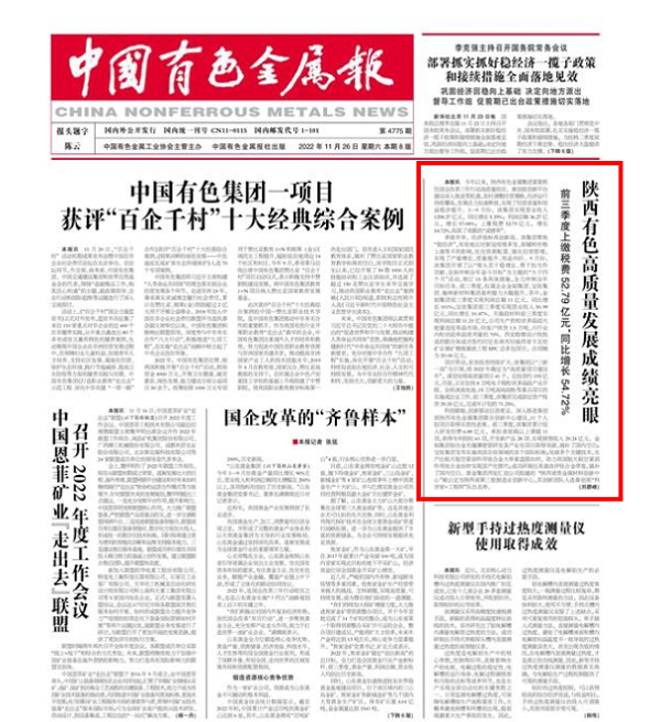 今年以來,陜西有色金屬集團(tuán)緊緊抓住國企改革三年行動高質(zhì)量收官、秦創(chuàng)原創(chuàng)新平臺建設(shè)深入推進(jìn)等機(jī)遇,及時調(diào)整經(jīng)營策略,經(jīng)濟(jì)運(yùn)行持續(xù)攀高,發(fā)展活力加速釋放,實(shí)現(xiàn)了經(jīng)營質(zhì)量和效益穩(wěn)步提升。1—9月份,該集團(tuán)實(shí)現(xiàn)營業(yè)收入1258.27億元,同比增長5.39%;利潤總額36.27億元,增長57.08%;上繳稅費(fèi)52.79億元,增長54.72%,收獲了亮眼的“成績單”。 多措并舉,經(jīng)濟(jì)指標(biāo)再創(chuàng)新高。該集團(tuán)聚焦“穩(wěn)經(jīng)濟(jì)”,有效地應(yīng)對新冠疫情多發(fā)、原輔料價格上漲等不利影響,優(yōu)化資源配置、強(qiáng)化經(jīng)營管理,實(shí)現(xiàn)了產(chǎn)量增長、質(zhì)量提升、效益向好。9月份,該集團(tuán)開展了以“埋頭苦干穩(wěn)增長、勇于擔(dān)當(dāng)作貢獻(xiàn)、全面沖刺全年奮斗目標(biāo)”為主題的“大干四個月”活動,制訂15條具體措施,全力沖刺全年目標(biāo)任務(wù)。前三季度,權(quán)屬企業(yè)金鉬集團(tuán)、寶鈦集團(tuán)、榆林新材料集團(tuán)盈利能力大幅提升。其中,金鉬集團(tuán)前三季度實(shí)現(xiàn)利潤總額11億元,同比增長101%;寶鈦集團(tuán)前三季度實(shí)現(xiàn)營業(yè)收入50.99億元,同比增長10.47%。天瑞硅材料前三季度實(shí)現(xiàn)利潤總額11.21億元,公司生產(chǎn)的粒狀多晶硅大批量直投單晶市場,向客戶供貨1.5萬噸,占行業(yè)內(nèi)粒狀硅單晶使用量的70%。西安勘察設(shè)計院組成的聯(lián)合體成功簽約印尼東南蘇拉威西省卡瓦倫礦業(yè)鎳礦精煉鎳鐵工程EPC總承包項目,合同額為20.06億元。 項目帶動,有效投資持續(xù)擴(kuò)大。該集團(tuán)以“三新一高”為引領(lǐng),將2022年確定為“高質(zhì)量項目建設(shè)年”,謀劃安排高質(zhì)量項目41個,總投資約195億元。目前,正在加快8萬噸電子級粒狀多晶硅產(chǎn)業(yè)升級、全釩液流電池、15萬噸高純硅粉等重點(diǎn)項目的實(shí)施或論證工作。前三季度,該集團(tuán)完成固定資產(chǎn)投資29.35億元,完成年計劃的71.25%。 科技賦能,創(chuàng)新驅(qū)動后勁更足。深入推進(jìn)秦創(chuàng)原陜西有色金屬集團(tuán)聯(lián)合創(chuàng)新中心建設(shè),11個入駐項目取得實(shí)質(zhì)性進(jìn)展。前三季度,該集團(tuán)累計投入研發(fā)經(jīng)費(fèi)6.89億元,承擔(dān)省部級以上課題11項,獲得專利授權(quán)61項,開發(fā)新產(chǎn)品28項、實(shí)現(xiàn)銷售收入29.24億元。金鉬集團(tuán)鉬合金無縫薄壁管研發(fā)及產(chǎn)業(yè)化項目取得突破,填補(bǔ)了國內(nèi)空白;寶鈦集團(tuán)發(fā)布實(shí)施我國在鈦領(lǐng)域的首個國際標(biāo)準(zhǔn);突破多個關(guān)鍵技術(shù),生產(chǎn)出航天航空緊固件用鈦合金大單重盤圓絲材,助力我國航天航空緊固件用鈦合金絲材實(shí)現(xiàn)國產(chǎn)化替代;成功研制出英康洛伊鈦合金帶卷,填補(bǔ)了國內(nèi)空白。黃金集團(tuán)西安匯創(chuàng)公司組建的“陜西省貴金屬材料創(chuàng)新中心”被認(rèn)定為陜西省第三批制造業(yè)創(chuàng)新中心,其創(chuàng)新團(tuán)隊入選秦創(chuàng)原“科學(xué)家+工程師”隊伍名單。 (原文鏈接:https://paper.cnmn.com.cn/Content.aspx?id=176209&q=4775&v=1 ) |