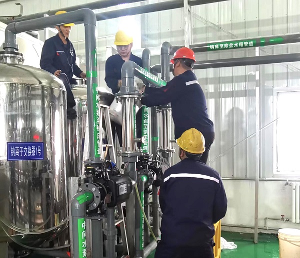 陽極分公司動力車間40T除鹽水設備鈉離子交換器因長時間運行,交換器內樹脂破碎損耗現(xiàn)象較為嚴重,吸附能力降低,布水器極易出現(xiàn)堵塞,設備性能發(fā)揮不足,已無法滿足正常生產需求。 為了解決該生產難題,保證余熱鍋爐正常用水,近期,分公司、相關部門、車間與設備廠家溝通,現(xiàn)場研究討論,對2臺40T除鹽水設備鈉離子交換器內破損樹脂進行逐一更換。車間嚴格按照更換方案,提前備足鍋爐用水,明確分工及更換程序,由檢修班組牽頭,運行班組通力配合,技術人員全過程監(jiān)督指導,克服作業(yè)空間褊狹等不利因素,利用帶壓水流作為動力源運移樹脂、清潔罐壁,用透水性能好的編制袋盛裝、搬移廢舊樹脂和罐壁污垢,然后重新裝填新樹脂。僅用兩天時間便完成了2臺40T除鹽水設備鈉離子交換器樹脂更換工作,在隨后幾天的生產觀察中,設備運行狀態(tài)、效果良好,各項指標參數(shù)達標、穩(wěn)定,制水效率由原來20m3/h提升到40m3/h,也完全達到了設備設計標準。 此次鈉離子交換器樹脂更換工作是動力車間挖潛設備效能,強化設備管理運行的充分體現(xiàn),車間也將繼續(xù)加強成本管控,優(yōu)化技術指標,加快推進余熱發(fā)電并網項目實施,努力為公司節(jié)能降耗、創(chuàng)新增效做出積極貢獻。 |