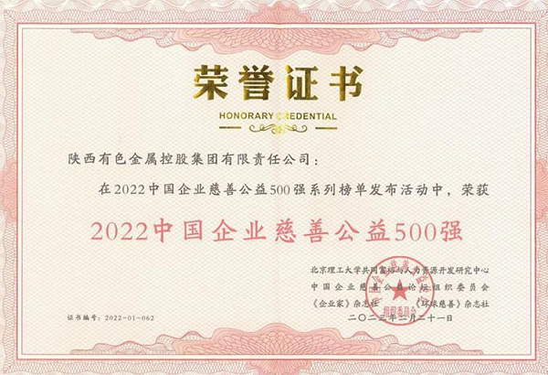 近日,2022中國(guó)企業(yè)慈善公益500強(qiáng)發(fā)布暨第六屆中國(guó)企業(yè)慈善公益論壇在重慶涪陵舉行,陜西有色金屬集團(tuán)榮獲“2022中國(guó)企業(yè)慈善公益500強(qiáng)”榮譽(yù)稱號(hào)。 近年來,陜西有色金屬集團(tuán)在實(shí)現(xiàn)快速發(fā)展的同時(shí),不忘回饋社會(huì),在定點(diǎn)幫扶、產(chǎn)業(yè)幫扶、援藏、愛心捐贈(zèng)等領(lǐng)域,先后投入3.6億元鞏固拓展脫貧攻堅(jiān)成果同鄉(xiāng)村振興有效銜接,投入資金6478萬元援助西藏阿里地區(qū),投入5000萬元援建勉縣災(zāi)區(qū),向青海玉樹災(zāi)區(qū)和陜南災(zāi)區(qū)捐款3500萬元,向省慈善協(xié)會(huì)社會(huì)扶貧網(wǎng)捐贈(zèng)400萬元,向退役軍人關(guān)愛基金捐贈(zèng)200萬元,助力第十四屆全國(guó)運(yùn)動(dòng)會(huì)組委會(huì)提供贊3000萬元。為脫貧攻堅(jiān)成果鞏固與鄉(xiāng)村振興有效銜接、疫情防控、重大自然災(zāi)害、民生工程建設(shè)中做出了積極貢獻(xiàn)。 |