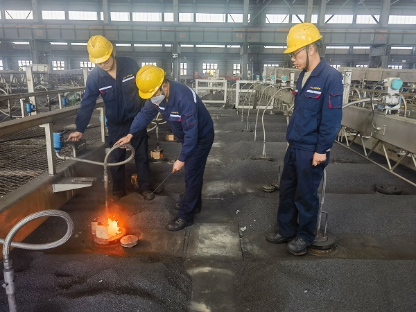 為有效落實(shí)好四季度“穩(wěn)增長”工作安排,10月26日上午,陽極分公司焙燒車間1#焙燒爐2#燃控系統(tǒng)點(diǎn)火啟動,分公司領(lǐng)導(dǎo)及相關(guān)人員現(xiàn)場指導(dǎo)。 為確保點(diǎn)火順利啟動,分公司相關(guān)部門、車間召開專題會議討論審定啟動方案及應(yīng)急預(yù)案,安排專人反復(fù)檢查爐室及設(shè)備狀況,確保點(diǎn)火啟動萬無一失。上午11點(diǎn),作業(yè)人員按照方案及責(zé)任分工,由#1火道至#9火道依次點(diǎn)燃,并手動控制調(diào)整火焰,點(diǎn)火啟動一次性成功。在烘爐期間,車間安排崗位人員24小時現(xiàn)場值守,及時關(guān)注火焰情況,確保燃燒架溫度按照既定升溫速率穩(wěn)步提升。 此次火焰系統(tǒng)點(diǎn)火啟動工作,有效檢驗了焙燒烘爐啟動方案的可操作性,進(jìn)一步保證了預(yù)焙陽極生產(chǎn)需求以及四季度預(yù)焙陽極代加工任務(wù)的順利完成。 |