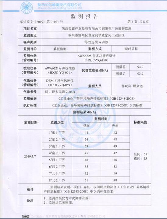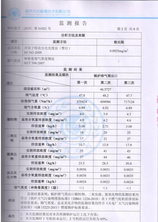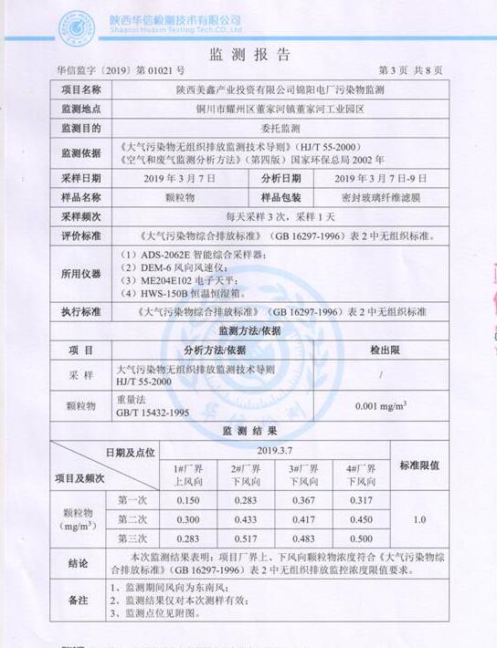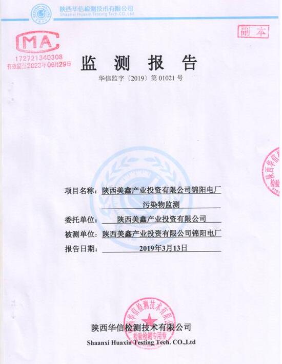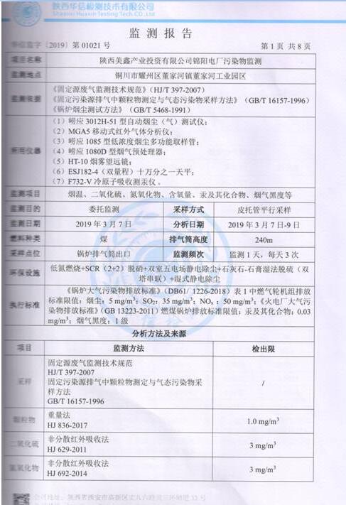 陜西美鑫產(chǎn)業(yè)投資有限公司錦陽電廠2×350MW機(jī)組2019年1季度自行監(jiān)測如下: