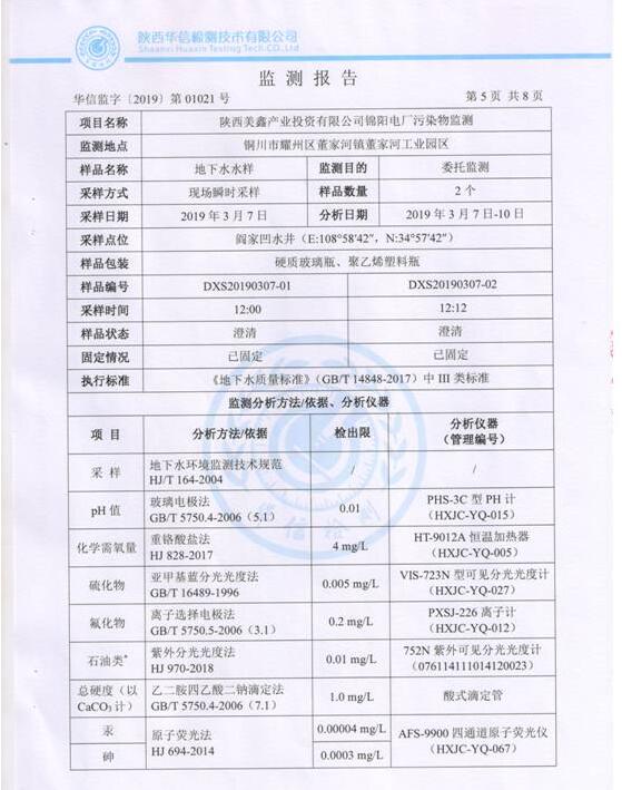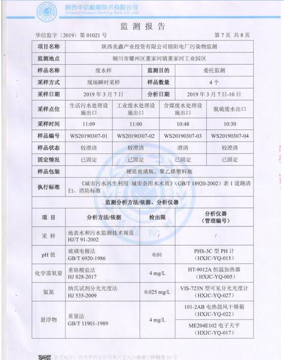 (3)監(jiān)測頻次:每月監(jiān)測一次(脫硫廢水不外排,監(jiān)測頻次可按季度監(jiān)測一次執(zhí)行),連續(xù)監(jiān)測1天,每天監(jiān)測2個水樣。