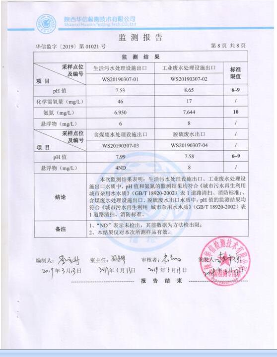 陜西美鑫產(chǎn)業(yè)投資有限公司錦陽電廠2×350MW機(jī)組2014年4月開工建設(shè),配套環(huán)保設(shè)施內(nèi)容煙氣處理(脫硫及濕電系統(tǒng)、電除塵系統(tǒng)、脫硝系統(tǒng))和廢水處理等系統(tǒng)配套環(huán)保設(shè)施于2016年4月5日竣工。