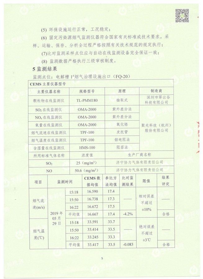 1.1電解槽煙氣治理設(shè)施總排口CEMS在線設(shè)備比對監(jiān)測