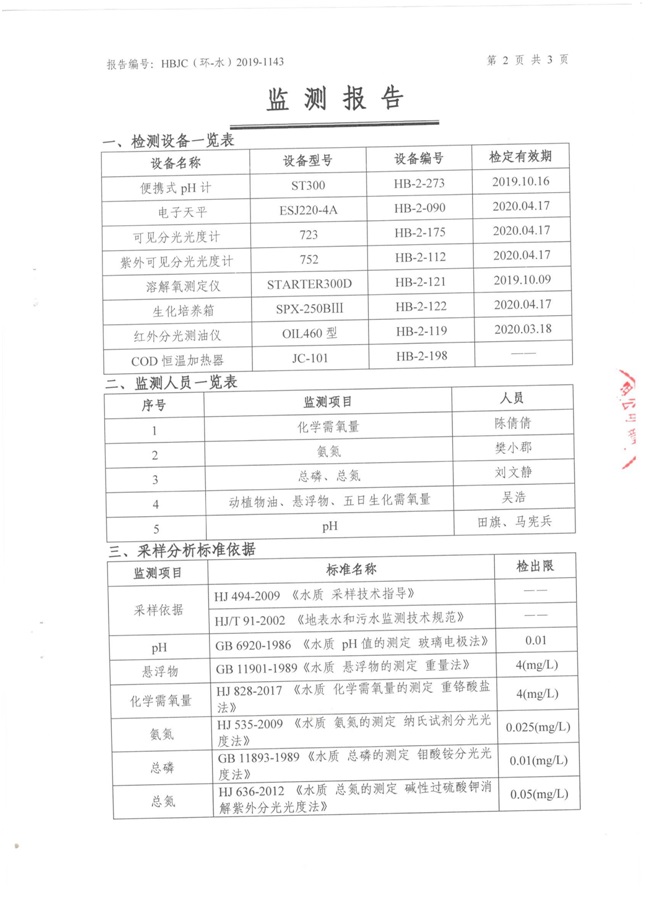 (1)監(jiān)測指標(biāo):化學(xué)需氧量、氨氮、懸浮物、總磷、石油類、氟化物、總氮。 (2)監(jiān)測點(diǎn)位:生產(chǎn)廢水排放口。 (3)監(jiān)測頻次:每月監(jiān)測一次,監(jiān)測1天,每天監(jiān)測1個(gè)水樣。 3廠界噪聲監(jiān)測