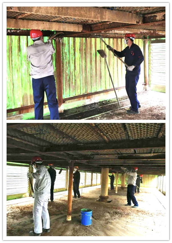 為了保證循環(huán)水設(shè)備安全平穩(wěn)運行,確保煅燒車間煅燒爐順利啟動。2020年9月中下旬,陽極分公司動力車間黨支部組織全體黨員開展清理冷卻塔主題黨日活動,對煅燒車間600噸冷卻塔各部位進行仔細排查檢修,并對內(nèi)部散熱管,鋼構(gòu)架進行全面清理。在車間黨支部書記的帶領(lǐng)下,10名黨員戴上防塵口罩,拿著掃把、鐵锨、鐵桶等工具開始清理。勞動中,大家兩人一組,邊鏟邊掃,配合默契,褐色的鐵銹塊紛紛落下,斑斑銹跡慢慢褪去。經(jīng)過大家的不懈努力,冷卻塔內(nèi)結(jié)垢物質(zhì)全部清理干凈,內(nèi)部臺面恢復(fù)潔凈。清理結(jié)束后,大家的口罩已變成了黃褐色,浮灰也布滿了每個人的臉頰,看著煥然一新的設(shè)備,大家的臉上露出了開心的笑容。 本次主題黨日活動把組織生活與義務(wù)清理勞動有機結(jié)合,營造出了良好的工作環(huán)境,用實際行動詮釋和踐行了黨員的先鋒模范作用,為促進陽極分公司生產(chǎn)工作貢獻了自己的一份力量。 |