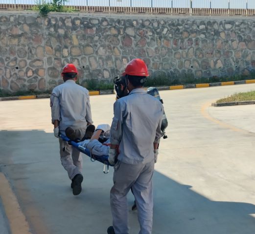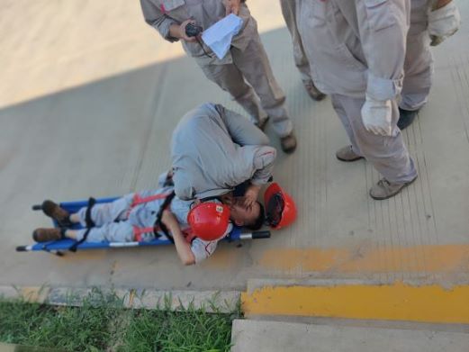 隨著總指揮一聲令下,下午15:00演練準(zhǔn)時開始,檢維人員在對4#Z0401綜合管網(wǎng)井巡檢時,因在沒有事先檢測井內(nèi)氧含量的情況下,私自進(jìn)入綜合管網(wǎng)井進(jìn)行違章作業(yè),導(dǎo)致窒息昏厥,同班人員發(fā)現(xiàn)后立即報告車間并撥打120救援電話,車間接到報告后立即啟動有限空間作業(yè)專項預(yù)案開展救援并上報領(lǐng)導(dǎo)。各應(yīng)急小組相繼到達(dá)現(xiàn)場,分工展開救援工作。