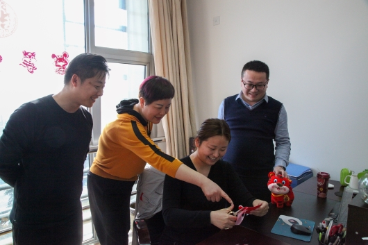 為了喜迎2022新春佳節(jié)到來,傳承中華傳統(tǒng)文化,傳遞“美美與共”和“鑫鑫向榮”的美好祝愿,公司機(jī)關(guān)辦公室自發(fā)組織部門剪窗花迎新年,增加節(jié)日的喜慶氣氛,感受濃濃中國(guó)年味兒。 大家拿出了事先準(zhǔn)備好的窗花樣板,“手藝人”馬莉娜細(xì)心地為大家講解如何剪出漂亮的圖案!斑@邊要用剪刀剪到三分之二”“那邊剪刀要剪下去直接剪斷”……在馬莉娜的指導(dǎo)下,大家發(fā)揮自己的想象。一張張紅紙?jiān)诖蠹业氖稚咸鴦?dòng),變成了一個(gè)個(gè)活靈活現(xiàn)地表現(xiàn)千變?nèi)f化的自然形態(tài)小老虎,新春佳節(jié)期間,年的味道也越來越濃。大家照著剪紙模型不斷嘗試,慢慢的找到了技巧一幅幅蘊(yùn)含著心意的作品誕生了。 “趙敏、馬莉娜,在你兩精心打扮下辦公室年味更加濃了!”大家互相欣賞著彼此的作品都非常的開心,爭(zhēng)著把它們張貼在了各自辦公室窗戶玻璃上,小小的剪紙,剪出了濃濃的春意,也剪出了美鑫職工的生活樂趣。 |