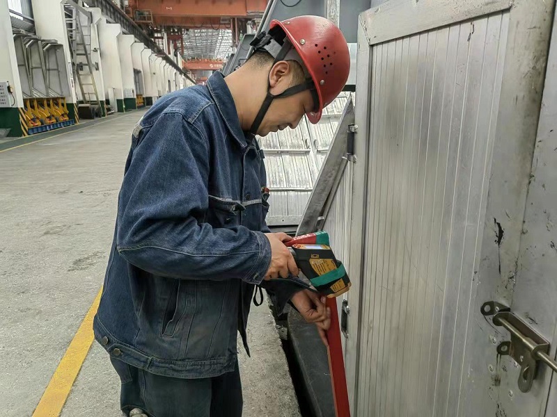 近日,鋁鎂合金分公司電解一車間通過改造手持式測溫槍基礎(chǔ)結(jié)構(gòu)及加裝顯示設(shè)備等技術(shù)手段,成功制作一款“智能便攜式測溫儀”,科學有效地解決了電解槽端頭溫度無法監(jiān)測的技術(shù)“盲區(qū)”,為精準監(jiān)控和合理調(diào)整電解槽技術(shù)參數(shù)提供了技術(shù)支撐。 由于電解槽兩端頭散熱孔距水泥路面僅有10余公分,操作人員無法利用普通手持式測溫槍完成槽端頭散熱孔的溫度測量工作,對電解槽安全平穩(wěn)生產(chǎn)構(gòu)成一定威脅。電解一車間本著“發(fā)現(xiàn)問題,解決問題”的積極態(tài)度,經(jīng)過技術(shù)革新小組一系列論證、實踐、改造等工作,“智能便攜式測溫儀”至此誕生,它由測溫槍、加長桿、攝像頭、顯示屏等部件構(gòu)成,使用時只需將測溫儀前端部分放置于槽端頭散熱孔內(nèi),溫度數(shù)值便可通過攝像頭顯示在后端屏幕上,操作人員無需彎腰即可輕松準確記錄每個測量點溫度。此外“智能便攜式測溫儀”還遵循輕量化設(shè)計及人體工程學原理,使用靈活簡便,節(jié)省體力,深受廣大職工好評。 |