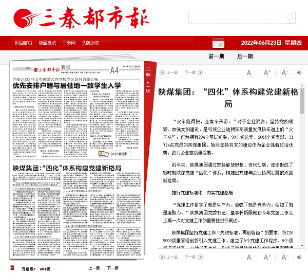 三秦都市報(bào) 2022年6月23日A4 陜煤集團(tuán):“四化”體系構(gòu)建黨建新格局 “火車跑得快,全靠車頭帶。”對(duì)于企業(yè)而言,堅(jiān)持黨的領(lǐng)導(dǎo)、加強(qiáng)黨的建設(shè),是引領(lǐng)企業(yè)馳騁在高質(zhì)量發(fā)展快車道上的“火車頭”。作為擁有204個(gè)基層黨委、93個(gè)黨總支、2065個(gè)黨支部、31724名黨員的陜煤集團(tuán),始終堅(jiān)持將黨的建設(shè)作為企業(yè)獨(dú)特政治優(yōu)勢(shì),助力企業(yè)高質(zhì)量發(fā)展。 近年來(lái),陜煤集團(tuán)通過(guò)堅(jiān)持解放思想,迭代創(chuàng)新,逐步形成了新時(shí)期陜煤黨建“四化”體系,構(gòu)建出黨建與企業(yè)協(xié)同發(fā)展的雙贏新格局。 推行黨建標(biāo)準(zhǔn)化 夯實(shí)黨建基礎(chǔ) “黨建工作做實(shí)了就是生產(chǎn)力;做強(qiáng)了就是競(jìng)爭(zhēng)力;做細(xì)了就是凝聚力。”陜煤集團(tuán)黨委書記、董事長(zhǎng)楊照乾在今年黨建工作會(huì)上再一次對(duì)黨建工作的重要性進(jìn)行闡述。 陜煤集團(tuán)堅(jiān)持黨建工作“先講標(biāo)準(zhǔn),再創(chuàng)特色”的要求,將ISO9000質(zhì)量管理創(chuàng)新引入黨建工作,建立了9個(gè)黨建工作程序、6個(gè)質(zhì)量運(yùn)行體系、77種任務(wù)表單,形成了獨(dú)具陜煤特色的黨建質(zhì)量管理體系,也成為了第一個(gè)完成黨建質(zhì)量管理體系認(rèn)證的陜西省屬企業(yè)。 值得一提的是,為打通黨建“最后一公里”,陜煤集團(tuán)還不斷將精力集中在推動(dòng)基層黨支部標(biāo)準(zhǔn)化建設(shè)中,從成立督導(dǎo)專班,抓標(biāo)準(zhǔn)統(tǒng)一,到制定《黨支部標(biāo)準(zhǔn)化規(guī)范化工作手冊(cè)》《典型案例匯編》《督導(dǎo)組培訓(xùn)學(xué)習(xí)手冊(cè)》《工作問(wèn)答手冊(cè)》,拍攝制作108部黨支部標(biāo)準(zhǔn)化教學(xué)系列動(dòng)畫視頻,解決了黨務(wù)工作者不會(huì)干和如何干的問(wèn)題。先后幫助和指導(dǎo)基層黨支部完成各類整改項(xiàng)目6648項(xiàng)。 “從最初的工作不規(guī)范,到對(duì)照標(biāo)準(zhǔn),規(guī)范開(kāi)展‘三會(huì)一課’、主題黨日、組織生活會(huì)、‘雙評(píng)’、談心談話等工作,黨支部和黨員的凝聚力、戰(zhàn)斗力和創(chuàng)造力得到了全面提升。”作為陜煤集團(tuán)“黨支部標(biāo)準(zhǔn)化、規(guī)范化示范點(diǎn)”的蒲白建莊礦業(yè)公司物資供應(yīng)部黨支部書記尚建山深有體會(huì)。這也是陜煤集團(tuán)近年來(lái)扎實(shí)開(kāi)展標(biāo)準(zhǔn)化黨建工作的預(yù)期效果和有力證明。 據(jù)悉,陜煤集團(tuán)從筑基、提升、鞏固、成效、品牌入手,通過(guò)257天五個(gè)階段對(duì)976個(gè)黨支部的細(xì)抓嚴(yán)管,并對(duì)所有支部采取查閱資料臺(tái)賬、現(xiàn)場(chǎng)提問(wèn)、觀摩組織生活等方式,堅(jiān)持壓實(shí)工作要求。截至去年底,2065個(gè)黨支部標(biāo)準(zhǔn)化建設(shè)工作已實(shí)現(xiàn)100%全面達(dá)標(biāo)。 推行黨建系統(tǒng)化 保障黨建運(yùn)行 如何系統(tǒng)性思考當(dāng)前黨建工作,著力構(gòu)建“大黨建”工作格局,使黨建工作時(shí)刻保持生機(jī)和活力,是陜煤集團(tuán)近年來(lái)一直研究的一項(xiàng)重要課題。 從“十三五”開(kāi)始,陜煤集團(tuán)便運(yùn)用“大黨建、大運(yùn)行”思維,逐步建立出“黨、政、工、團(tuán)”相互關(guān)聯(lián)、互為支撐的黨建工作機(jī)制。形成了各黨務(wù)部門從做實(shí)做細(xì)自身工作,到相互聯(lián)動(dòng)協(xié)作,再到近期、遠(yuǎn)期協(xié)同的良好機(jī)制。每年通過(guò)“黨建工作整體安排+組織、團(tuán)委等各專業(yè)年度工作要點(diǎn)+工作清單、細(xì)則”“1+N+S”一攬子工作布局,形成橫向到邊、縱向到底的黨建工作閉環(huán)管理模式,逐步創(chuàng)造出一批“陜煤標(biāo)準(zhǔn)”“行業(yè)標(biāo)桿”。 特別是在如何解決國(guó)企黨建重點(diǎn)難點(diǎn)熱點(diǎn)問(wèn)題上,陜煤集團(tuán)成立了黨建實(shí)踐課題研究中心,創(chuàng)辦《陜煤黨建》內(nèi)刊,集思廣益,發(fā)動(dòng)基層各單位共同思考和研究國(guó)企黨建相關(guān)課題,目前已累計(jì)課題研究37項(xiàng),形成研究成果100余篇。實(shí)施的“融創(chuàng)”黨建工程、黨建體系先后獲得全國(guó)國(guó)有企業(yè)黨建課題研究成果一等獎(jiǎng)等榮譽(yù)。 “項(xiàng)目成果離不開(kāi)系統(tǒng)化的課題研究,我們就是要把項(xiàng)目成果轉(zhuǎn)化為工作成果、制度成果、理論成果,體現(xiàn)先進(jìn)性,爭(zhēng)做引領(lǐng)者。”陜北礦業(yè)黨委書記、董事長(zhǎng)、總經(jīng)理郭佐寧介紹道。 陜北礦業(yè)作為陜煤集團(tuán)“北移”的代表性單位,在不斷提升安全生產(chǎn)效益的同時(shí),經(jīng)過(guò)多年來(lái)在黨建工作與中心工作相互融合的課題研究中,嘔心瀝血總結(jié)出獨(dú)具特色的“一軸五驅(qū)”黨建工作體系,并在基層各單位進(jìn)行了廣泛推廣。有付出就有回報(bào),2021年5月,陜北礦業(yè)《“一軸五驅(qū)”黨建體系建設(shè)》榮獲“2021年全國(guó)煤炭行業(yè)黨建工作示范案例”。 推行黨建融合化 激活黨建活力 陜煤集團(tuán)黨委書記、董事長(zhǎng)楊