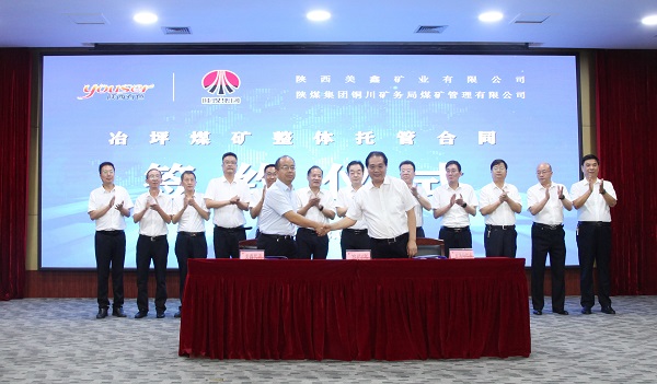 | 8月1日下午,陜西美鑫礦業(yè)有限公司、銅川礦務(wù)局煤礦管理有限公司整體托管冶坪煤礦合同簽約儀式順利舉行。銅川礦業(yè)公司黨委書記、董事長(zhǎng)劉水利,黨委副書記、總經(jīng)理路根奎,黨委副書記、董事、工會(huì)主席許江濤;公司黨委書記、董事長(zhǎng)高曉兵,黨委副書記、副總經(jīng)理侯小強(qiáng),黨委副書記李書平,副總經(jīng)理?xiàng)畎凵,監(jiān)事會(huì)主席李樹深等領(lǐng)導(dǎo)出席簽約儀式。 美鑫礦業(yè)公司總經(jīng)理席聯(lián)校,銅川礦業(yè)公司副總工程師、煤礦管理公司黨委書記、總經(jīng)理李福錦,代表雙方簽署冶坪煤礦整體托管合同。 簽約儀式上,劉水利代表銅川礦業(yè)公司向本次簽約表示熱烈的祝賀,對(duì)雙方三年多來,坦誠(chéng)交流溝通、務(wù)實(shí)合作結(jié)下的深厚情誼表示肯定。希望雙方在良好合作的基礎(chǔ)上,凝聚共識(shí)、密切協(xié)作,取長(zhǎng)補(bǔ)短、合作共贏,以此次托管工作為橋梁,推動(dòng)雙方交流合作向更寬領(lǐng)域更深層次更高水平邁進(jìn)。