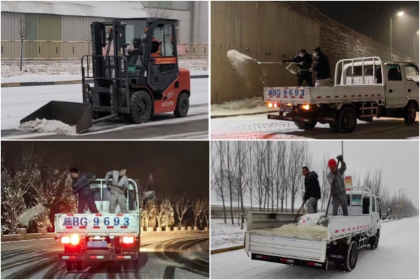 2024年2月1日大雪飄灑而致,滿眼望去,大地銀裝素裹,潔白無瑕。受降雪影響,道路濕滑,給車輛運(yùn)行帶來極大的安全隱患。為全力做好雨雪天氣下車輛運(yùn)行安全工作,工藝車隊(duì)黨支部“以雪為令”,立即啟動(dòng)雨雪天氣防滑應(yīng)急預(yù)案,組織人員全力以赴投入到除雪工作中。 1日傍晚,雪量加大,應(yīng)急人員結(jié)合實(shí)際分成兩個(gè)小組,分別到公司各個(gè)坡道、彎道拋撒融雪劑,特別對(duì)車流量較大的210國道至美鑫公司辦公樓的大坡道進(jìn)行細(xì)致清理,確保了職工上班和車輛運(yùn)輸?shù)陌踩珪惩ā?o:p> 2日早晨10時(shí)許,灰蒙蒙的天空,雪花漫談飛舞,大雪不期而至,轉(zhuǎn)瞬間,原本灑過融雪劑的道路,又被積雪覆蓋。工藝車隊(duì)安排機(jī)動(dòng)人員給坡道彎道繼續(xù)拋灑融雪劑,又利用制作的鏟雪工裝,推鏟地面積雪,減少融雪劑投入,確保清雪工作及時(shí)高效。 漫天飛雪,天寒地凍,但大家不怕冷、不怕苦、不怕臟,干勁十足,持續(xù)堅(jiān)守崗位監(jiān)控雪量和道路積雪情況,用行動(dòng)全力保障公司職工出行安全和生產(chǎn)安全。 |