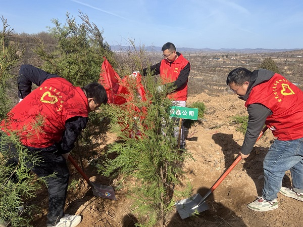 春風(fēng)吹新綠,植樹正當(dāng)時(shí)。在全國第46個(gè)植樹節(jié)到來之際,公司積極開展“依法盡責(zé)植樹 共享森林銅川”植樹活動,進(jìn)一步提升公司廣大干部職工綠色發(fā)展意識和環(huán)境保護(hù)意識,以實(shí)際行動傳遞綠色力量、走好綠色之路。此次活動由后勤服務(wù)中心牽頭組織,公司廣大團(tuán)員青年志愿者積極參與。 3月12日一大早,大家身穿紅馬甲,拿起工具,全副武裝前往印臺區(qū)史家河“曙光林栽植點(diǎn)”。在植樹現(xiàn)場,大家緊密配合、分工協(xié)作,揮锨鏟土、定點(diǎn)挖坑、放苗回填、澆水培植,每個(gè)環(huán)節(jié)都井然有序。此次活動計(jì)劃栽種柏樹苗500余株。當(dāng)日新栽種的樹苗在春日下迎風(fēng)挺立,為初春的大地增添了一分生機(jī)。 通過活動,進(jìn)一步增強(qiáng)了廣大干部職工的生態(tài)意識、環(huán)保意識、文明意識。大家紛紛表示,在今后的工作生活中將牢固樹立“綠水青山就是金山銀山”理念,持續(xù)開展綠色環(huán);顒,爭做生態(tài)文明的踐行者、倡導(dǎo)者和推動者。 |