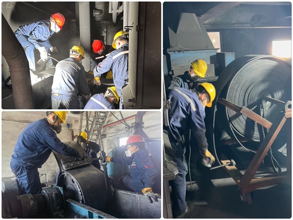 | 陽極分公司成型車間返回料#1斗式提升機從階段性試運行到持續(xù)生產(chǎn)已有9年之久,連接部位積料和銹蝕問題逐漸顯現(xiàn),主動輥滾筒及皮帶磨損程度也已達到更換標準。近期,結(jié)合工作實際和設備檢修計劃,車間決定對#1斗式提升機進行全面維修。 此次返回料斗式提升機維修強度高、難度大,分公司相關職能部門及車間高度重視,成立檢維修工作小組,商討制定維修方案和應急預案,隨著備品備件的逐步到廠,維修工作如期展開。維修過程中,檢修班組和生產(chǎn)班組協(xié)同配合,從拆卸固定螺栓、清理積累物料到對拆下部件進行標記分類擺放、備品備件有序更換安裝,維修人員精心操作、規(guī)范作業(yè),確保每道工序有條不紊、高效完成。特別是在手動盤車更換80米皮帶過程中,檢修人員結(jié)合現(xiàn)場實際自主設計制作適用工具,有效推進了更換進度。經(jīng)過為期5天的不懈努力,于4月12日按計劃完成維修更換工作,設備運行調(diào)試正常后將投入生產(chǎn)。 此次檢修工作,不僅徹底消缺了該設備存在的問題,也有效保證了后期車間生產(chǎn)工作的持續(xù)穩(wěn)定。今后工作中,成型車間將持續(xù)做好設備隱患排查治理,確保設備安全高效穩(wěn)定運行。 |