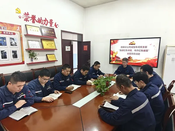 11月20日,陽極分公司成型車間黨支部組織開展“品讀紅色書籍 傳承紅色基因”主題黨日活動(dòng)。 活動(dòng)現(xiàn)場,大家共同閱讀了《把一切獻(xiàn)給黨》《百年信仰》《紅色延安故事》《苦難輝煌》等紅色經(jīng)典書籍,感知那一段段波瀾壯闊的歷史。隨后,在交流發(fā)言環(huán)節(jié),大家分享讀書感受、暢談學(xué)習(xí)收獲。支部委員張磊現(xiàn)場分享了《把一切獻(xiàn)給黨》的閱讀感悟,“這本書的作者吳運(yùn)鐸同志用自己的一生詮釋了怎樣‘把一切獻(xiàn)給黨’,是我們每個(gè)黨員學(xué)習(xí)的榜樣,我要勇于擔(dān)責(zé)、認(rèn)真盡責(zé),做好模范表率,用實(shí)際行動(dòng)為公司健康可持續(xù)發(fā)展貢獻(xiàn)力量!彼f道。 現(xiàn)場黨員一致表示,在今后工作中,始終堅(jiān)定理想信念,傳承和發(fā)揚(yáng)黨的優(yōu)良傳統(tǒng)和工作作風(fēng),踔厲奮發(fā)、勇毅前行,以飽滿的工作熱情和積極的工作態(tài)度干好本職工作。分享結(jié)束后,黨支部書記帶領(lǐng)黨員重溫入黨誓詞,大家緊握右拳、面向黨旗、莊嚴(yán)宣誓。 此次活動(dòng),不僅為廣大黨員提供了學(xué)習(xí)和交流的平臺,筑牢了“信仰之基”,補(bǔ)足了“精神之鈣”,也激發(fā)了黨員愛黨愛國情懷和創(chuàng)新創(chuàng)造活力。下一步,成型車間黨支部將努力把“主題黨日”打造成為提升隊(duì)伍凝聚力、落實(shí)重點(diǎn)任務(wù)的有效載體,將成果成效轉(zhuǎn)化為高質(zhì)量干好安全生產(chǎn)工作的強(qiáng)大動(dòng)力。 |