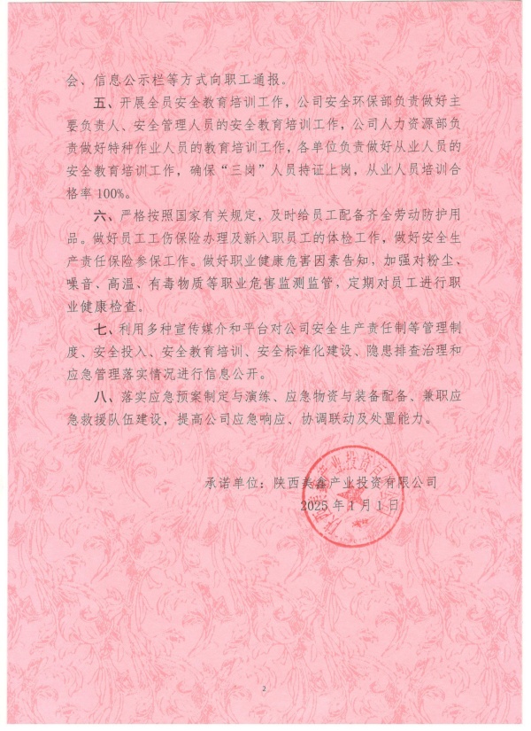 陜西美鑫產(chǎn)業(yè)投資有限公司安全生產(chǎn)承諾