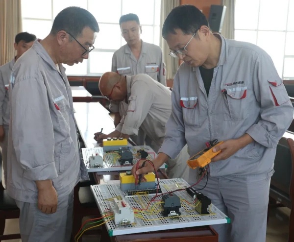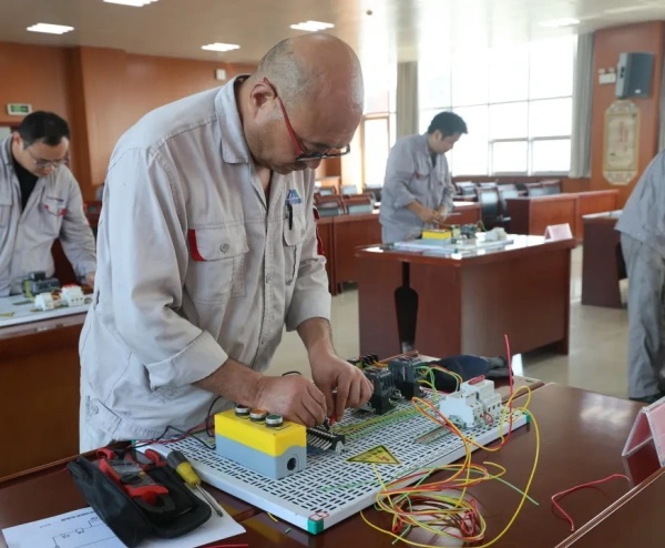 為深入貫徹落實“四賽四抓”勞動和技能競賽實施方案,公司于7月14日至15日在錦陽電廠舉辦2025年通用工種低壓電工崗位技能競賽。本次競賽以“建功‘十五五’·技能鑄輝煌”為主題,來自鋁鎂合金分公司、陽極分公司及錦陽電廠的61名選手同臺競技,通過“理論+實操”雙環(huán)節(jié)比拼,全面檢驗并提升職工技能水平。 競賽聚焦電動機(jī)連續(xù)運轉(zhuǎn)與點動控制兩大工業(yè)自動化核心技術(shù),圍繞電氣原理圖識讀、安全規(guī)范等理論內(nèi)容及主回路接線、控制回路調(diào)試等實操技能展開。理論考核側(cè)重知識儲備與識圖能力,實操環(huán)節(jié)則要求選手在50分鐘內(nèi)完成復(fù)雜電路搭建與調(diào)試,精準(zhǔn)實現(xiàn)點動控制的瞬時響應(yīng)與連續(xù)運轉(zhuǎn)的穩(wěn)定性控制。裁判組通過萬用表檢測、通電試運行等標(biāo)準(zhǔn)化流程嚴(yán)格評分,確保競賽公平公正。 比賽現(xiàn)場,選手們展現(xiàn)扎實的專業(yè)功底與應(yīng)急處置能力,從接觸器線圈自鎖到按鈕開關(guān)互鎖,每一處接線均體現(xiàn)精益求精的工匠精神。公司黨委副書記、董事、工會主席楊亞科現(xiàn)場指導(dǎo),勉勵職工“以賽促學(xué)、以賽促練”,將競賽成果轉(zhuǎn)化為實際生產(chǎn)力。此次競賽不僅搭建了技藝交流平臺,更推動了公司“技能競賽-崗位練兵-技術(shù)創(chuàng)新”三位一體培養(yǎng)體系建設(shè),為培養(yǎng)高素質(zhì)產(chǎn)業(yè)工人隊伍、推動企業(yè)高質(zhì)量發(fā)展注入新動能。 |