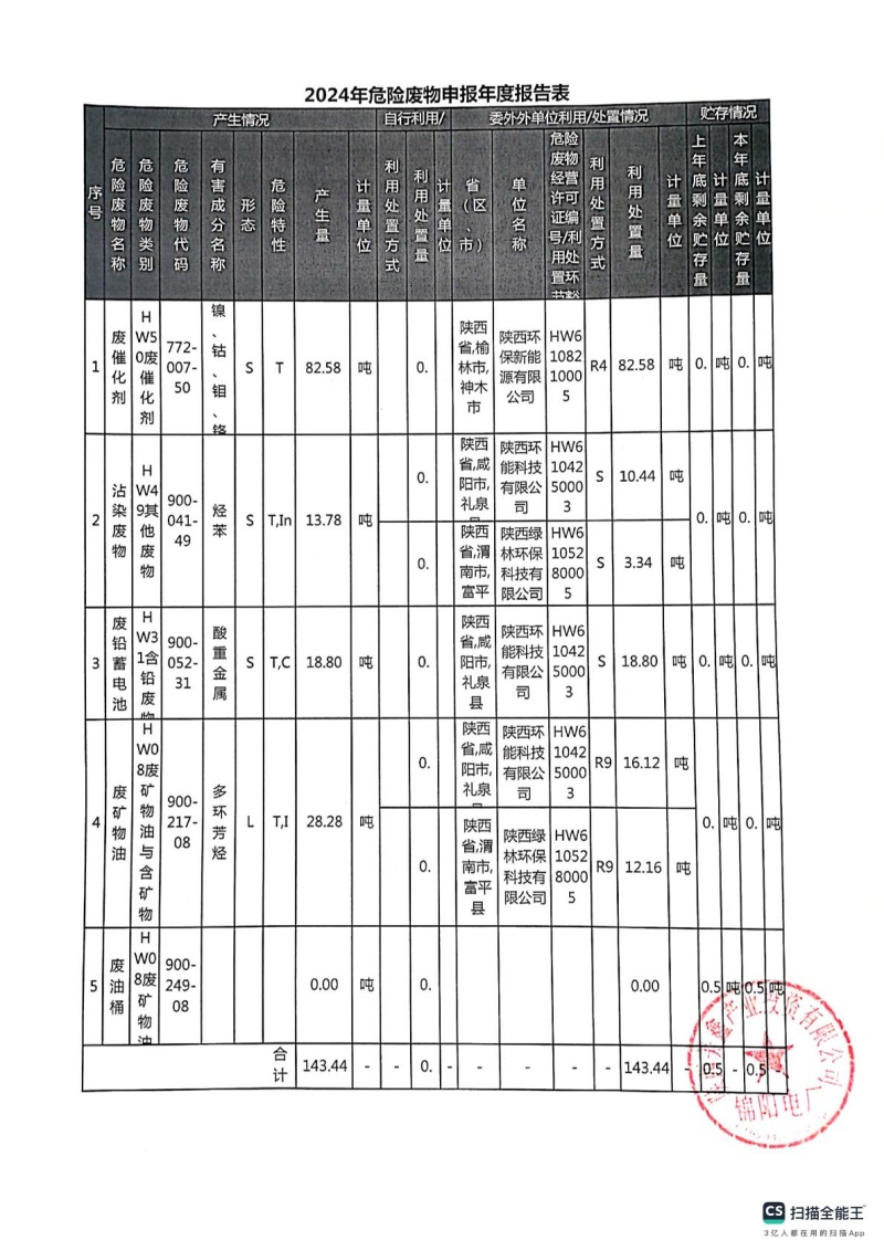 2025年危險(xiǎn)廢物管理計(jì)劃(錦陽電廠)
